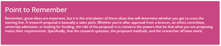 The following example was extracted from the Research Proposal course by Dr Zina O’Leary.